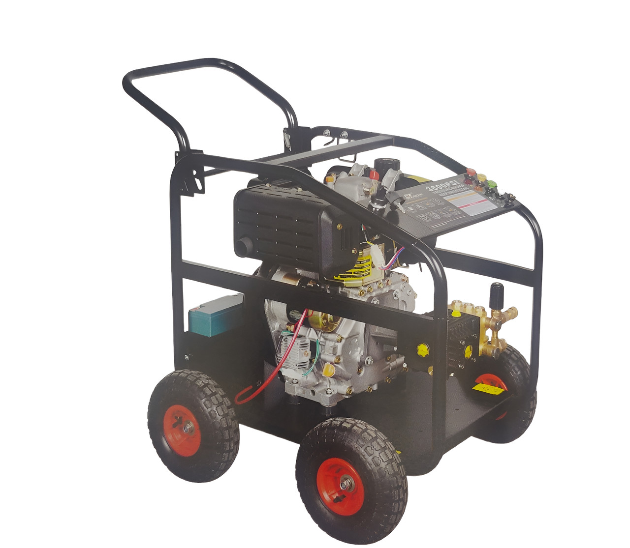 Дизельная мойка высокого давления 3wZ-3600DF: дизельный двигатель 186FE, 3600spi-250 бар, 4,0gpm-15Л/мин,4 колеса для тяжелого промышленного или коммерческого использования.